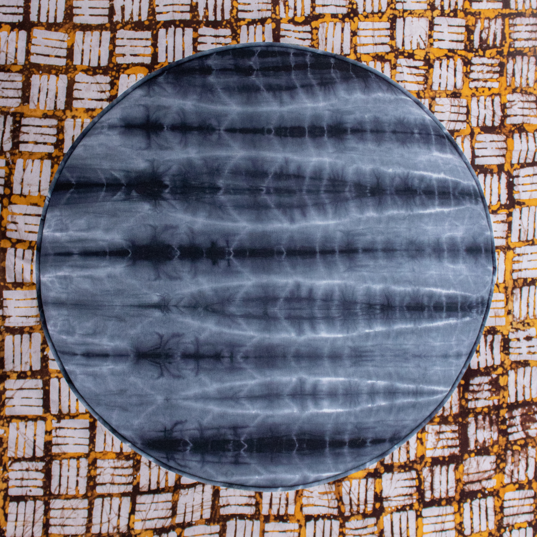 this elegant ottoman is crafted from traditional tanzanian fabric. our umoya fabric is dyed using a traditional tanzanian tie-dye technique and paired with a south african pine wood base in a natural finish. this striking piece adds a touch of cultural artistry and sophistication to any space.